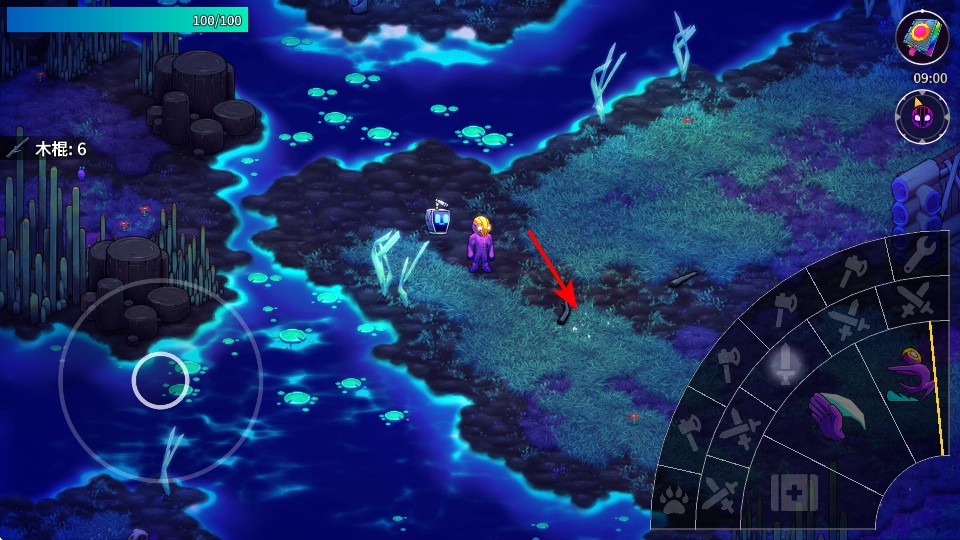 4、在场景中收集木棍等资源,这些资源可以用于制作的工具或者升级基本的装备,助力游戏进程。