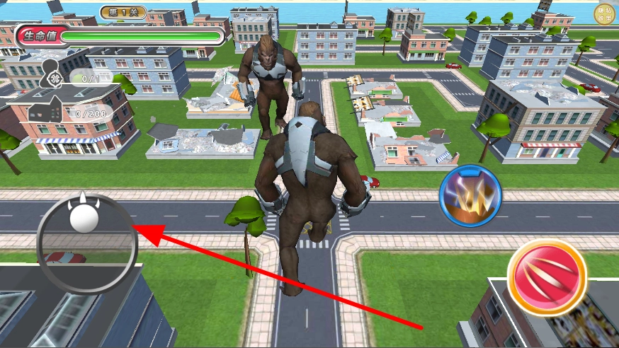 3、在战斗过程中,通过左侧的操作按钮,操控角色在城市场景中移动,调整位置,为发起攻击做准备。