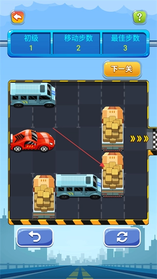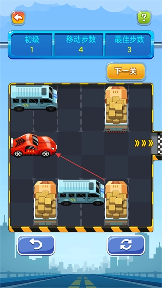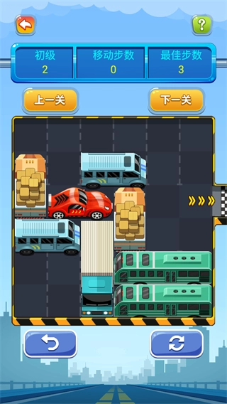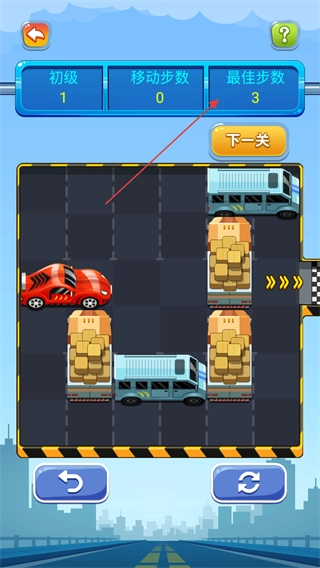 3、在移动车辆过程中,留意移动步数的变化,尽量以接近或达到最佳步数来完成关卡。