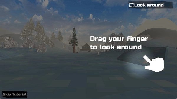 2、上岸后开启教程,滑动屏幕右侧可实现视角转动,便于观察周围环境。