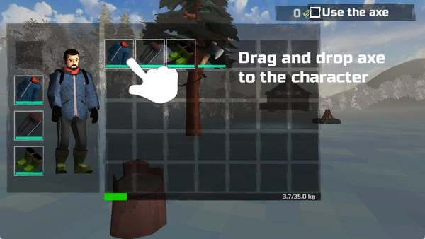 4、持续向前行进,能获取一把斧头,打开背包将其装备,提升基础工具能力。