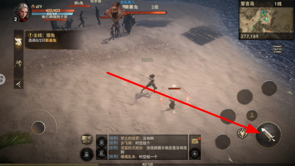 4、点击右侧攻击按钮,对敌人发起攻击,应对猎兔等任务中的敌人,持续攻击能高效完成击杀目标。