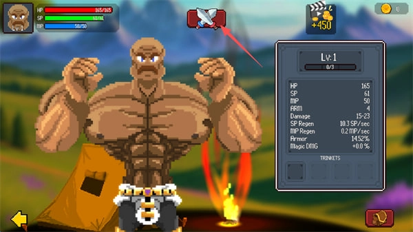 2、点击屏幕上方的双剑按钮就可以正式开始游戏;