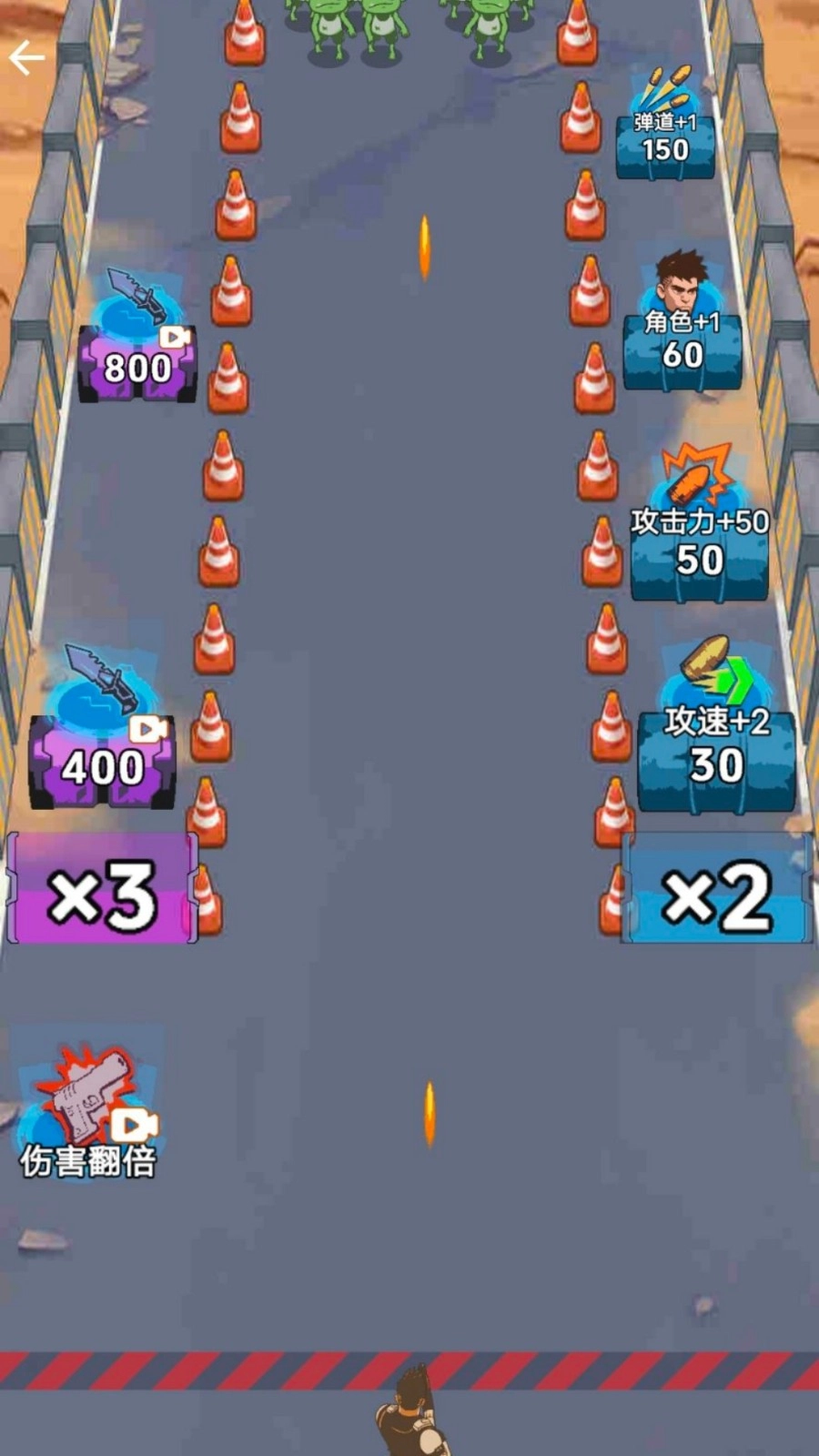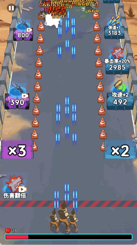 2、当弹道+1道具生效时,将射击位置调整到丧尸聚集的密集区域,借助多弹道同时攻击的特点,让清场效率达到最高,从而迅速减轻战场的压力。