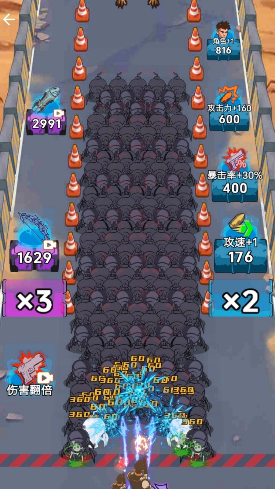 2、通过积累积分与道具,可在属性面板中升级暴击率、攻速等核心能力,或是解锁新角色,以此提升整体战斗实力,逐步增强防线的稳固性。