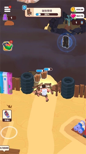 2、游戏的核心玩法循环为“探索-收集-升级-再探索”,玩家在探索阶段要破坏墙壁与木箱以收集建筑材料,之后把这些材料运送至指定的工作站。