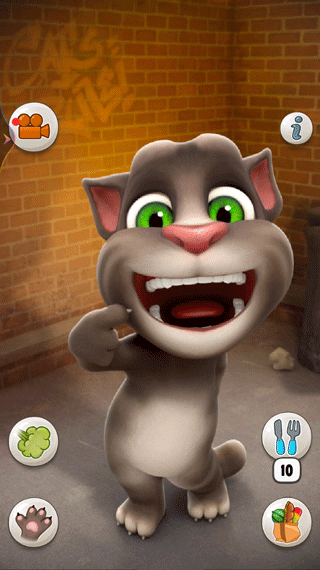 1、跟汤姆讲话,他会以有趣的声音复述。