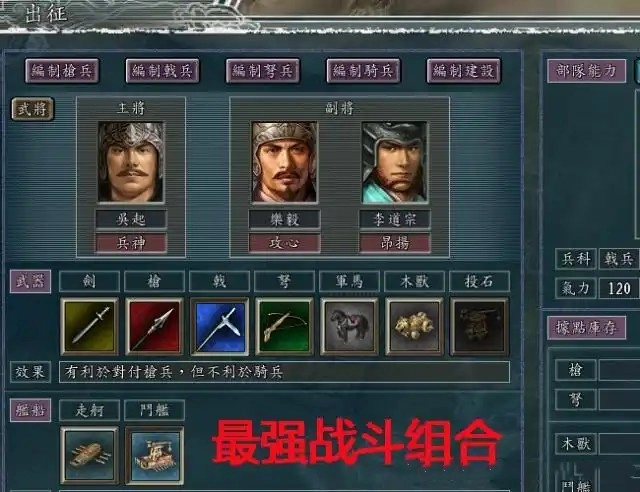 在血色战场中,部队的攻防表现与三个核心要素紧密相关:其一为领军武将的综合能力,其二是部队自身的士气状态,其三则是兵力规模。若要评判何种部队堪称最强,笔者认为需满足三个条件:首先,部队武将的属性与特技必须足够强势,不能存在明显短板——比如智力偏低易遭智控压制,统帅或兵种适性不足导致本体攻防疲软;其次,部队需具备自主维系士气的能力,避免战斗数回合后便陷入颓势;最后,兵力需能实现自我补充,唯有如此才能保持韧性、持久作战。 游戏内符合这类条件的组合不在少数,但论及最强战斗组合,笔者心中的答案是“兵神+攻心+昂扬”搭配戟兵。理由如下:兵神吴起拥有超高的统帅与智力属性,攻防两端均属顶级水准,基本可免疫绝大多数智谋控制;兵神特技本身能大概率抵消敌军的战法与计略控制,搭配戟兵后又能进一步提升对普通攻击的规避概率;再辅以昂扬(原文“昂起”为笔误,修正为“昂扬”)与攻心特技,这支具备群攻能力的部队便如同战场“永动机”——既能通过战斗补充兵力,又能持续恢复士气,堪称无解的存在。