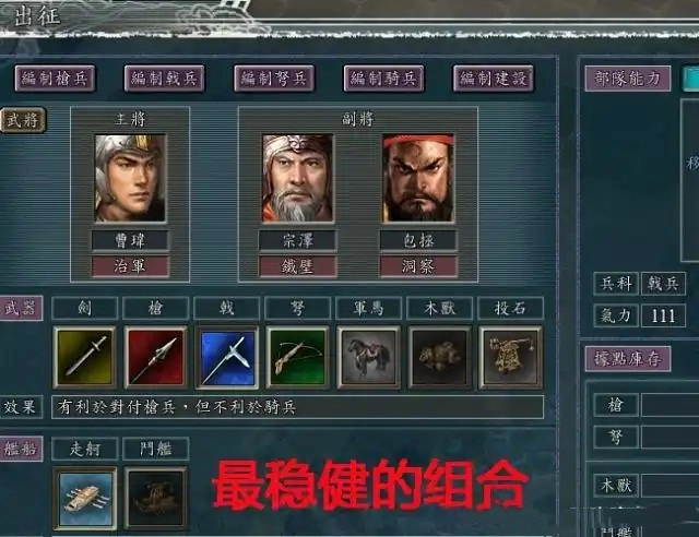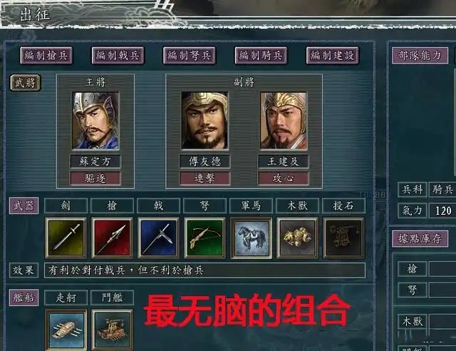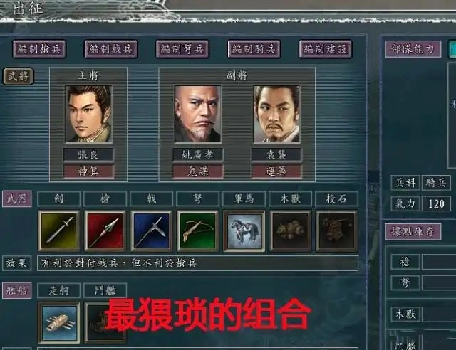 关于跑得最快的组合,小编觉得“强行+运筹+飞将”是最优选择。首先,强行特技能增加移动距离,飞将则可以无视ZOC和周围障碍物,这两个技能搭配起来速度已经很可观了。不过即便如此,一回合也只能行动一次。而运筹的作用就是让部队一回合能跑两次——行军时只要在空地上放个火计,就能触发第二次行动,这样才算把速度拉到极限。当然,把飞将换成遁走也是可行的。