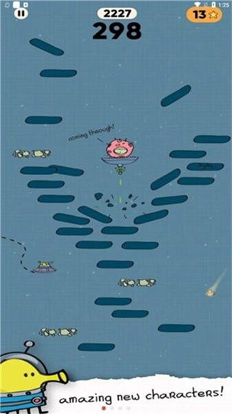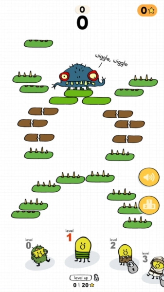 2、涂鸦跳跃2》游戏里的平台设计同样丰富多样,还有一碰就碎、无法回头的机制设定。