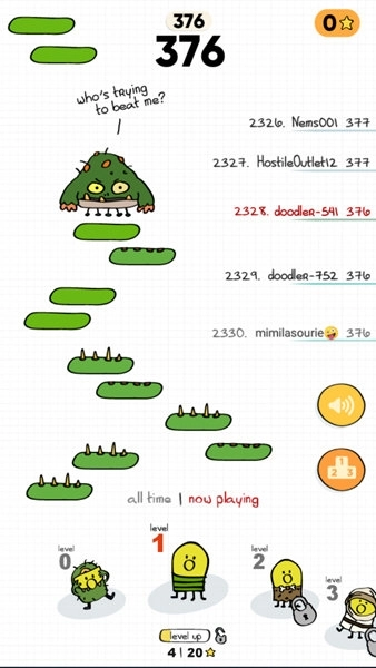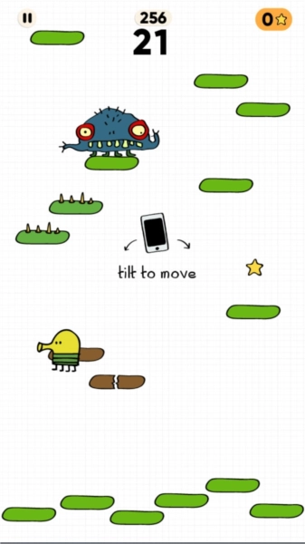 《涂鸦跳跃2》作为经典休闲跳跃游戏《涂鸦跳跃》的续作,整体采用萌趣的卡通画风,同时提供多张创意十足的新地图供玩家探索。游戏操作方式为倾斜屏幕控制角色左右移动,角色接触台阶时会自动向上弹跳。跳跃过程中会遇到尖刺、怪物、黑洞等各类障碍,一旦触碰便会导致游戏失败;此外还有火箭、蹦床、弹簧等功能性道具,借助这些道具可实现快速跳跃,助力玩家挑战更高高度、刷新分数记录。
