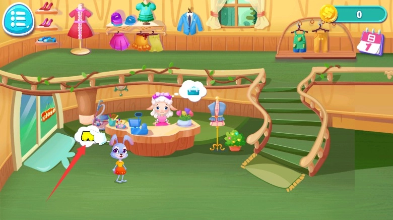 1、首次启动游戏程序并点击开始按钮后,就能进入动物时尚裁缝店的经营体验环节。