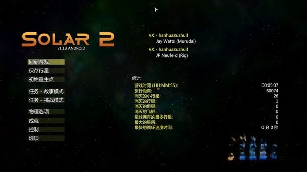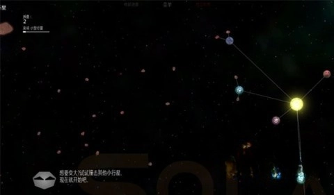 1、刚开始进入游戏时,你的角色是一颗小行星,通过撞击其他小行星来慢慢增加自身质量,最后逐步形成行星。