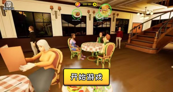 1、进入游戏后,你会看到餐厅内有一桌桌客人正在用餐,点击即可开始游戏。