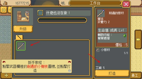 2、在工作台界面,选择材料打造装备,消耗工資完成打造,提升店铺的产品产出能力。