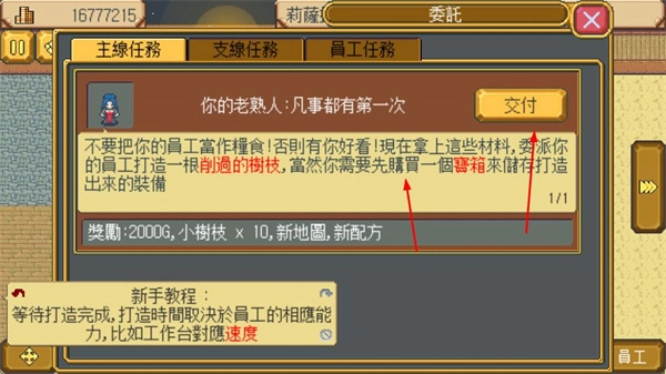 3、完成委托任务,交付打造的装备,获取金币、材料、新地图和配方等奖励,助力店铺发展和冒险探索。