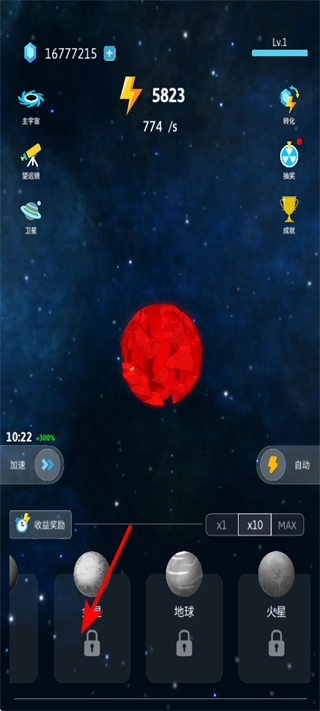 3、点击带有锁的金星图标,可尝试解锁该星球,解锁后能拓展游戏内容,开启新的资源获取区域。