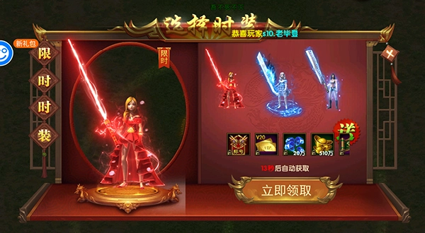 1、上线送基础神兵,创建职业,根绝玩家的职业来获取武器,帮助你度过新手期。