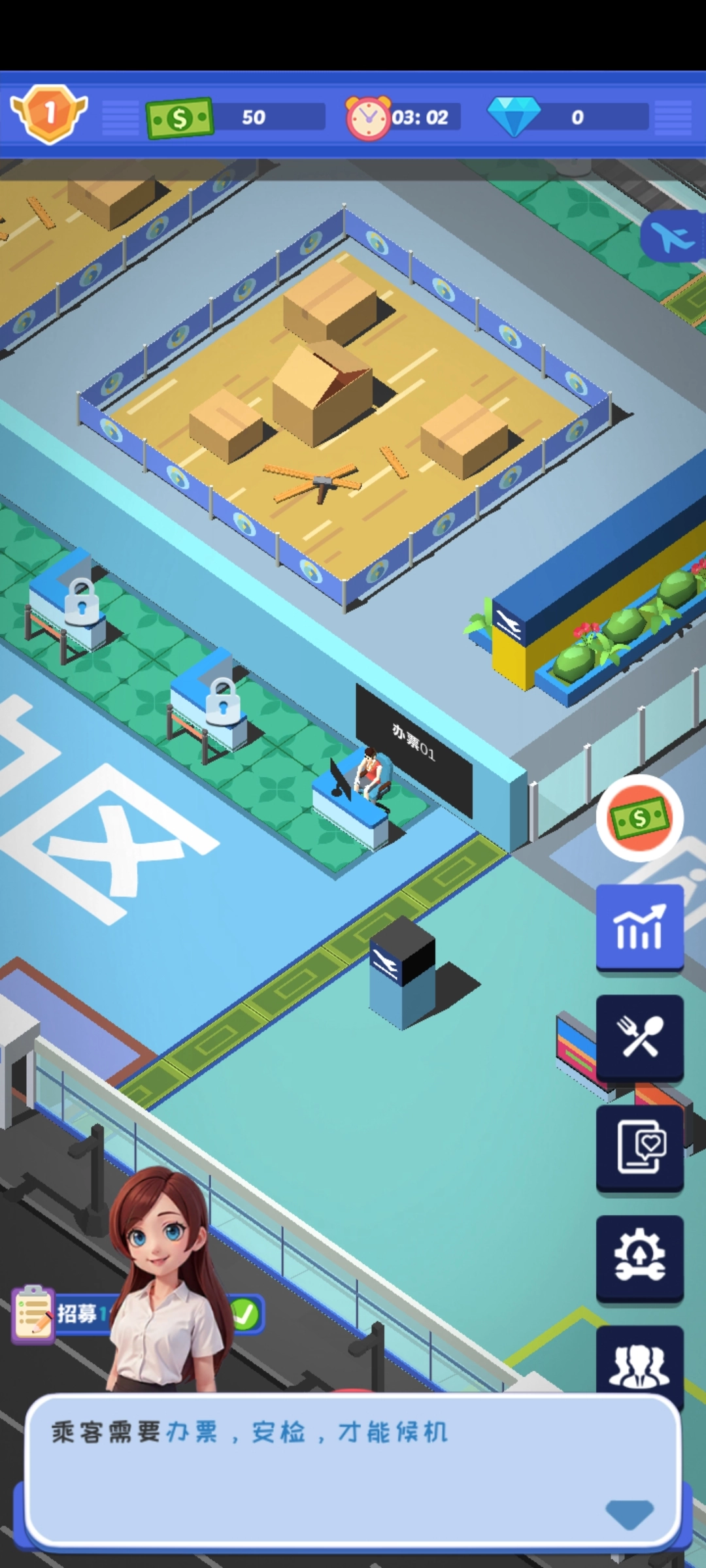 航站楼外景会随游戏时间呈现昼夜交替与天气变化,营造沉浸式视觉体验。