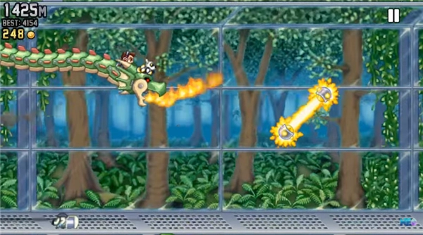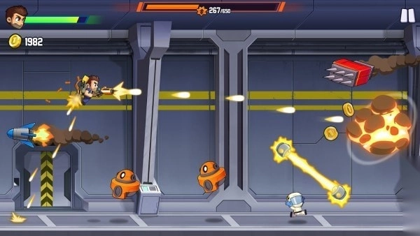 《疯狂喷气机》中文版是一款动作射击题材的休闲游戏。游戏设定在一座神秘工厂内,科学家们正密谋实施一项巨大的破坏计划,而这一秘密被主角Barry意外察觉。为了揭露真相,Barry潜入工厂展开调查,却在盗取对方的火箭飞行器准备撤离时,遭遇了敌人预先设置的重重机关。此时,玩家需要协助主角躲避危险、成功逃脱。游戏过程紧张刺激,能为玩家带来独特的沉浸式体验,同时还拥有丰富多样的场景设计。