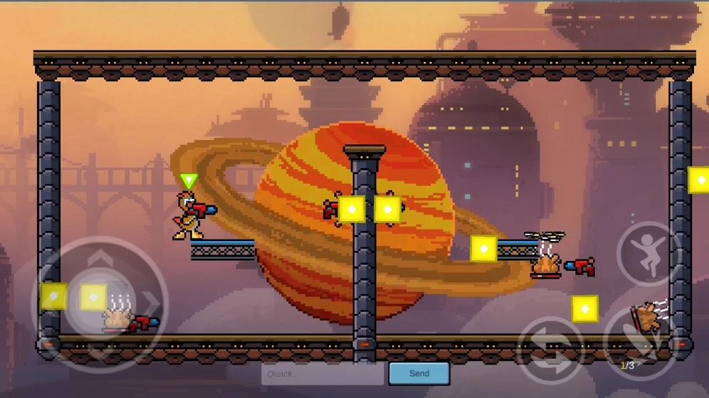 乱斗鸡是一款像素风格的冒险游戏,画面简约清新,不仅有丰富的创意设定,还提供了各式各样的角色供玩家操控战斗!在游戏里,你能解锁更多武器来发动攻击,玩法十分多样,还可以和队友并肩作战,共同消灭对手!感兴趣的话就赶紧来体验吧!!!