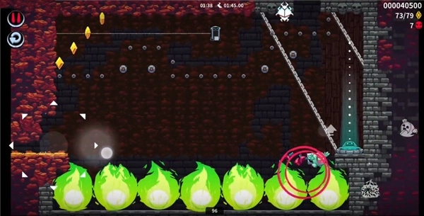 2、进入关卡后,我们首先跳跃到下图右上角的位置获取技能道具,然后从关卡中央上升到上一层。
