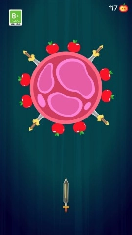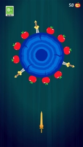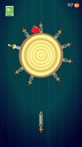 2、游戏进行时需避开场景里的各类障碍物,防止飞刀投掷出错,与此同时收集苹果,为解锁新武器积攒必要的资源。