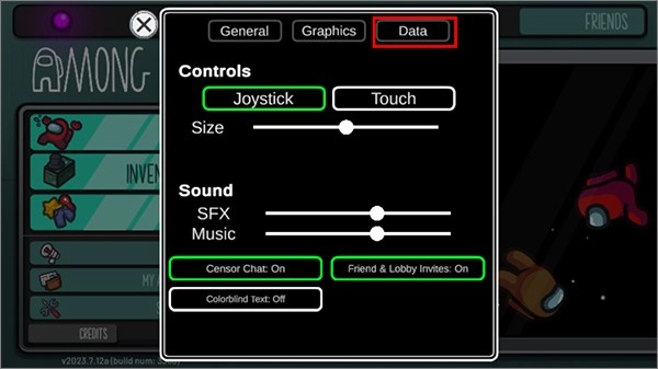 2、打开设置列表后,玩家点击右上角的“data\\”;