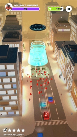 2、节奏玩法与破坏机制的融合:玩家需跟随音乐节奏完成舞步移动,在此过程中踩碎障碍物、撞毁挡路车辆,让破坏感与律动感交织碰撞,带来满满的趣味体验。