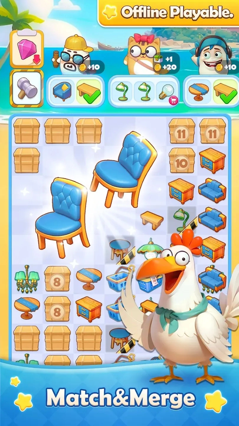 4. 玩家主要需要合并道具来升级,并不断解锁新的区域和功能。