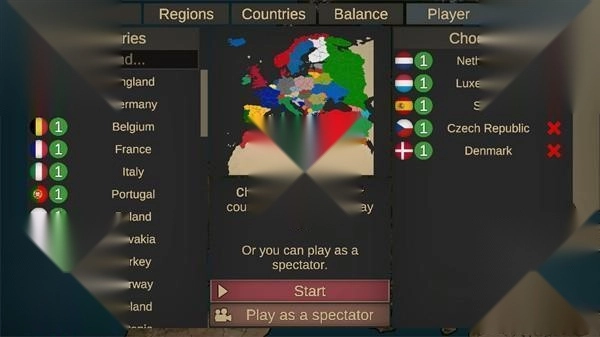 3、选定地图后,你会进入国家选择界面,该界面一般标注为“Regions”或“地区”,在此界面中,你需要仔细查看并挑选一个你心仪的国家。