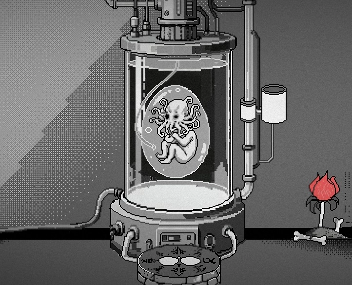 终厄围绕克苏鲁神话题材展开了一系列创作,以祂那令人恐惧的降临作为故事背景,搭配黑白画风与诡异的气氛渲染,使玩家在游玩过程中时刻承受着高压,沉浸于紧张又刺激的冒险解谜体验之中。