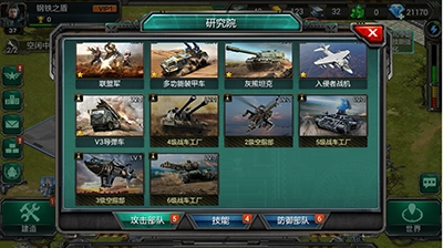 研究院由攻击部队、防御部队和技能研究这三大部分组成,其研究范畴包含了这三大领域的属性升级。技能解锁会受到研究院等级、空指挥等级、战车工厂等级以及武装指挥部等级的限制,部分项目还可以借助图纸来开展进阶研究。研究过程主要消耗的是石油资源,同时也能够使用钻石来加快研究进程。