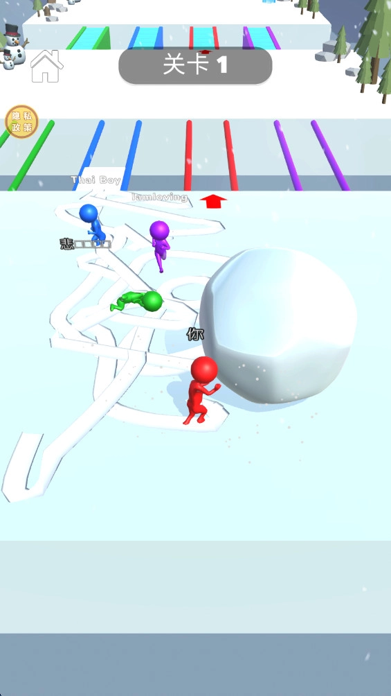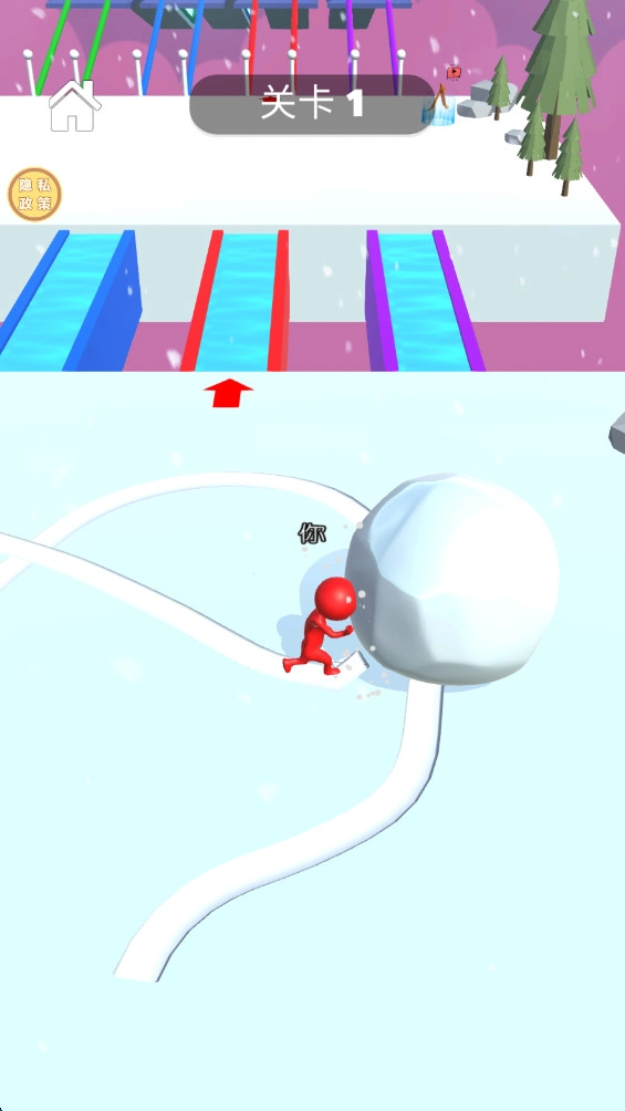 《快快向前闯》以雪球竞速为核心玩法,玩家将操控萌趣角色推动雪球,在色彩缤纷的赛道上一路向前。游戏创新采用多赛道并行的设计,每条赛道都有专属颜色标识,玩家需依据自身角色的颜色匹配对应的正确路径。随着雪球滚动过程中不断变大,玩家可借此碾压其他对手来抢占优势,不过也要时刻留意避开各类障碍,防止雪球因碰撞而变小。