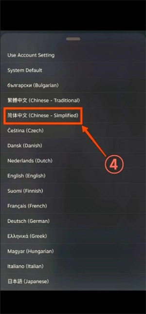 5、最后找到简体中文就可以将steam手机版设置成中文版了。