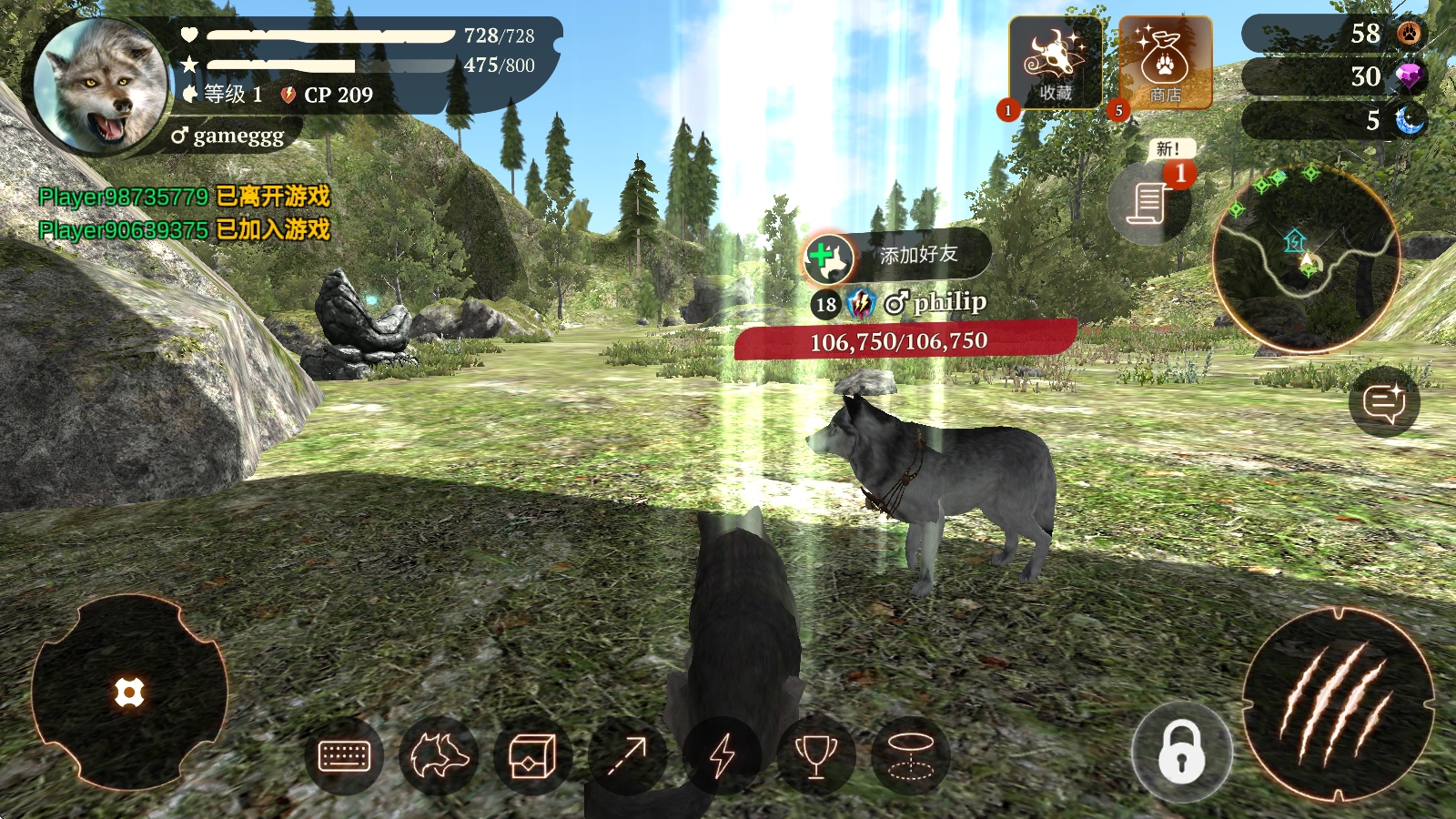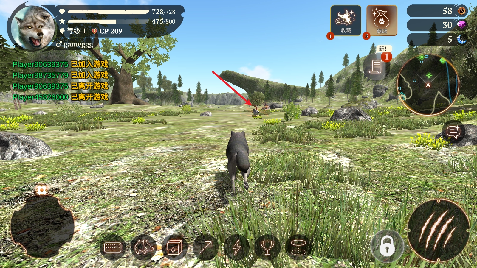 2、玩家能够在游戏里和全球各地的玩家较量,在同一处场地中比拼狩猎,角逐出真正的狼族之王。