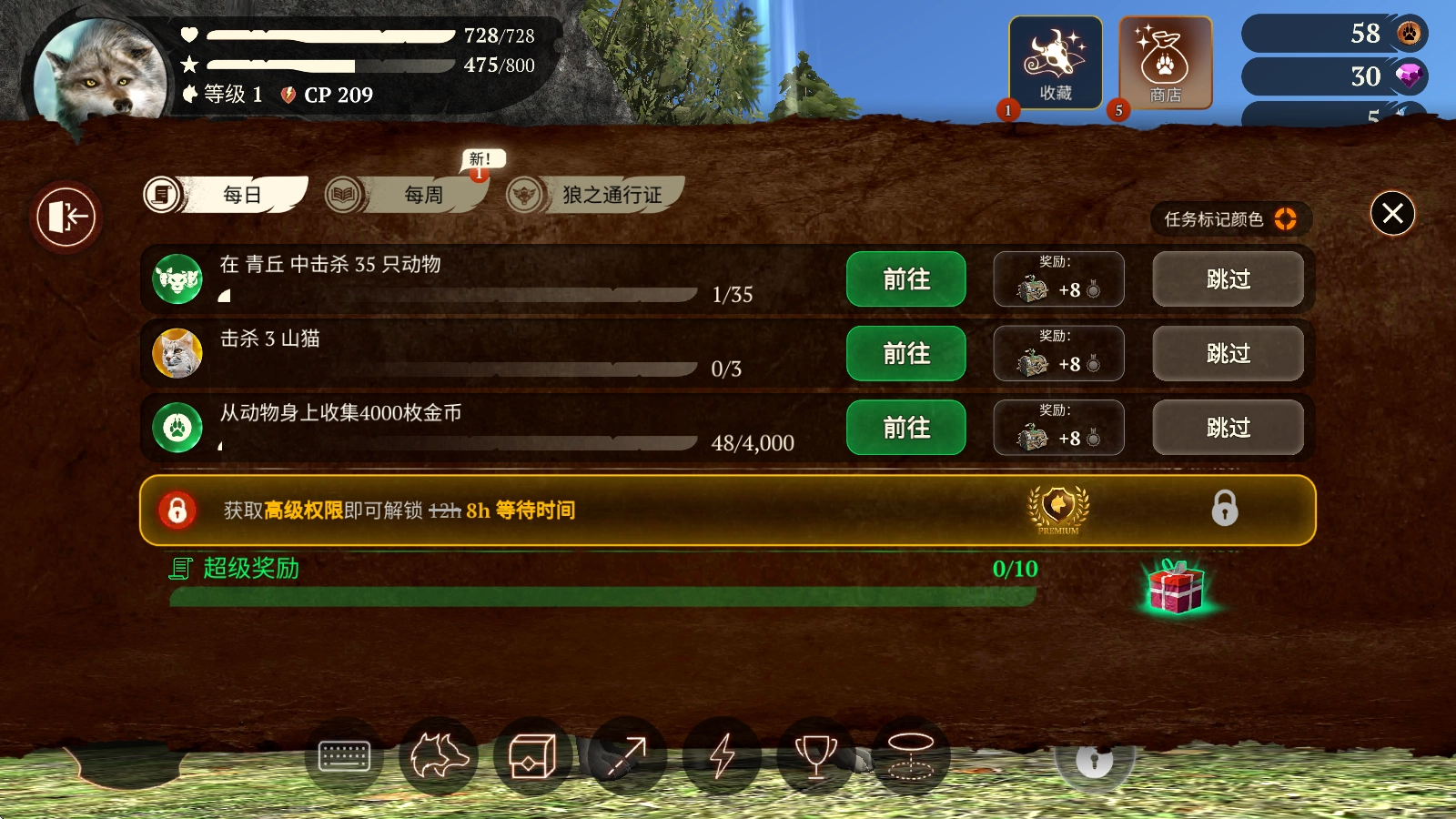 2、灰狼、豺狼、西伯利亚狼等不同种类的狼皮肤可供解锁使用,挑选你钟爱的款式并进行培养吧。