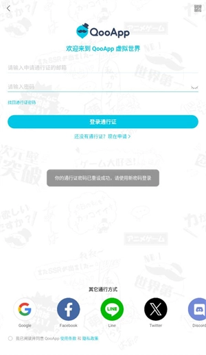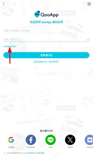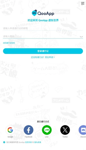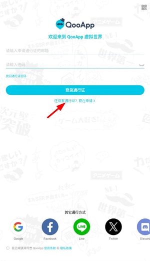 2、也可以通过点击下方的其他登录方式进行登录,这些方式包括谷歌、脸书、line、X、discord、QQ以及游客登录。