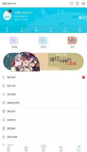 6、点击我的可以查看已安装的游戏,或者已关注的账号以及修改个人资料。
