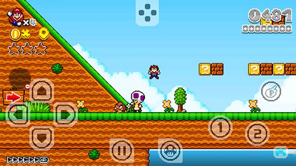 1. 第一步,打开超级马里奥2D世界手机版,点击右侧的2就能开启游戏。