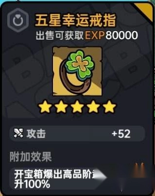 5、散装戒指:幸运戒指,五星后能够提高70%开启宝箱爆出高品质武器的概率。