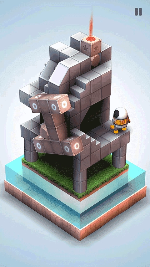 1、充满萌趣的角色设计,操控着呆萌的小机器人在奇幻的机械世界里穿梭,开启智慧与空间感的双重挑战。