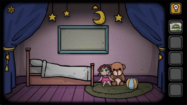 接着我们就走进了屋子,在这里安娜会和我们交谈。等对话结束后,我们直接点击安娜身旁的那扇小蓝门,门里会出现一个叫莉莉的娃娃,她正缺一件衣服。于是我们向右切换场景,点击衣柜的左上方,就能看到几个小圆点了。