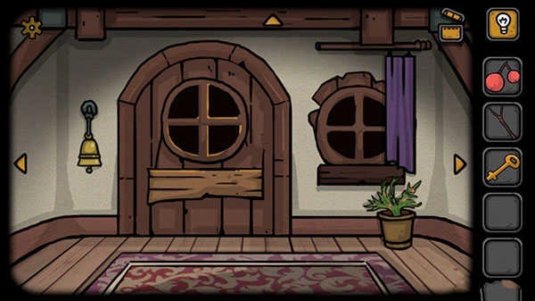 这个密码对应的操作是左3下、右5下、左2下,是不是有点让人摸不着头脑?这个密码是用来操作大门上的铃铛的。我们得一直向右切换场景离开莉莉的房间,到房子的大门处就能看到那个铃铛了。之后按照左摇3下、右摇5下、左摇2下的顺序操作,就会掉落一把钥匙。这把钥匙正是衣柜的钥匙,打开衣柜就能拿到魔药和衣服了。