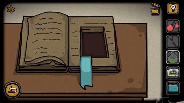 4、多点几次魔法书后,我们翻一次页就能获取里面的火柴了。另外,在左边的木桶上发现了我们要找的太阳魔法卷轴,这个道具就在左边的木桶上。