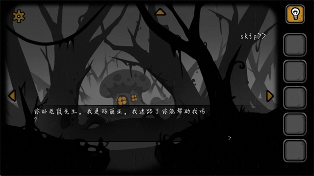 一开始的时候,我们女主直接向左看到上图的那个蘑菇房子,然后走回家就好,这里我们会看到一只小老鼠来和我们说话,选什么都可以。