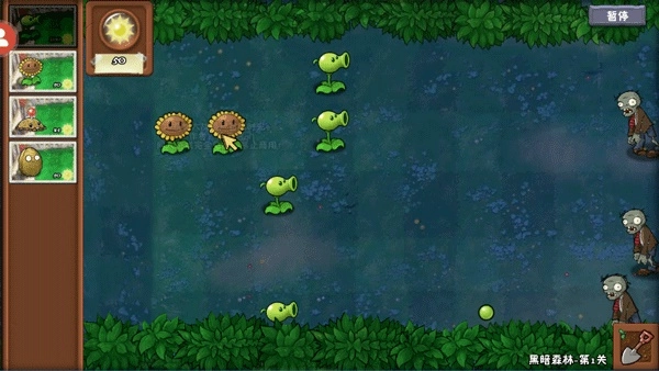 种下后向前移动,发现僵户则变为缓慢移动且高速射出火焰豌豆。