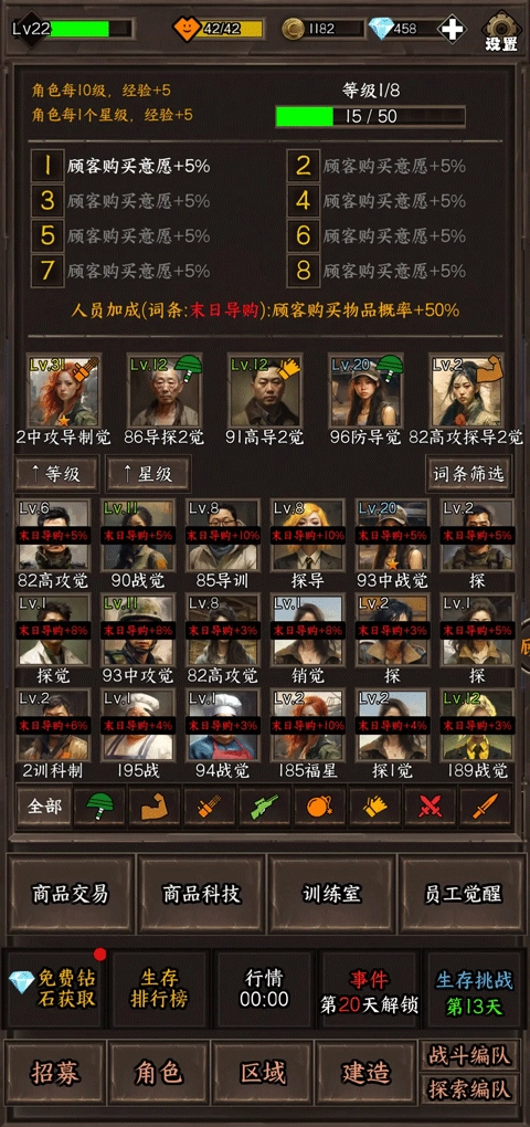 8、超市系统融入了多样的模拟经营玩法,玩家在末日背景下运营超市时,除了要负责物资的采购与销售管理,还可以通过对商品进行升星培养,来增强商品的价值和对顾客的吸引力。