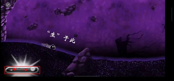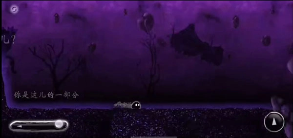4、我们看到一只小毛球来到了一个漆黑的地方,左边有左右方向键,于是我们向前移动;