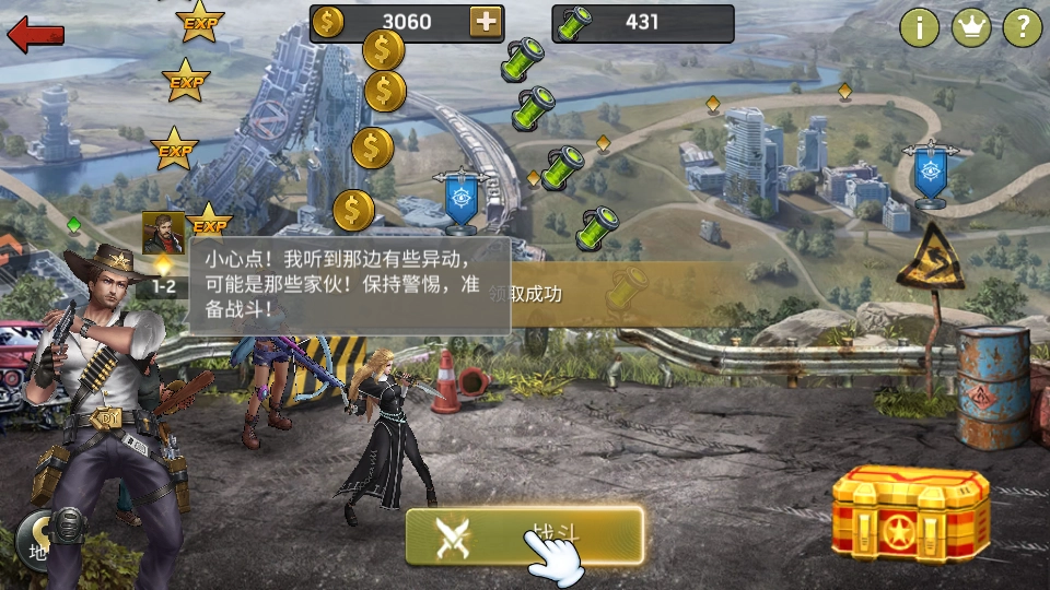 3、拥有英雄后,点击现世界即可开启闯关战斗
